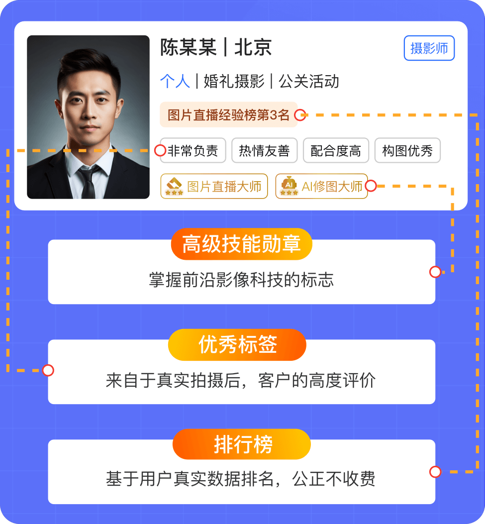 2.成为影像行业科技升级的推动者,擅长在抖音/小红书/B站等平台分享摄影知识,注重作品质量